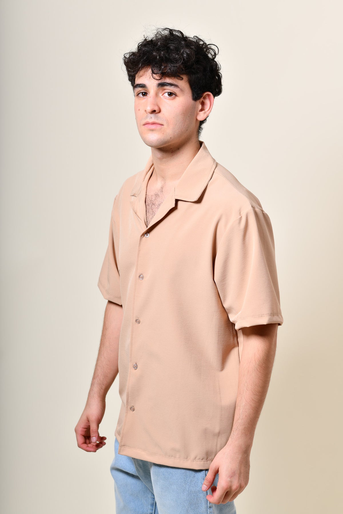 Camisa de manga corta en tela tipo crepe suave, con cuello, botones adelante y bajo recto. Corte oversize para mayor comodidad y frescura.