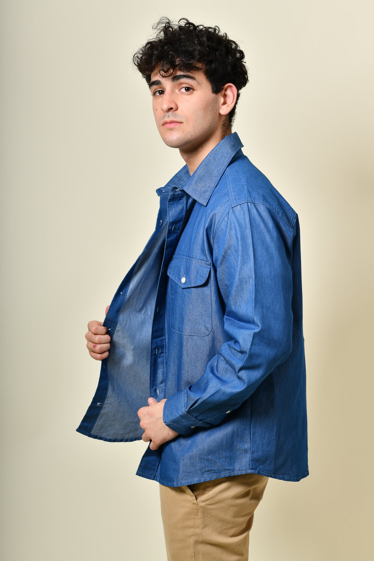 Camisa regular fit confeccionada en denim de algodón. Cuello solapa y manga larga acabada en puño con botón. Bolsillos en el pecho. Efecto lavado. Costura combinada a contraste. Cierre frontal con botones.